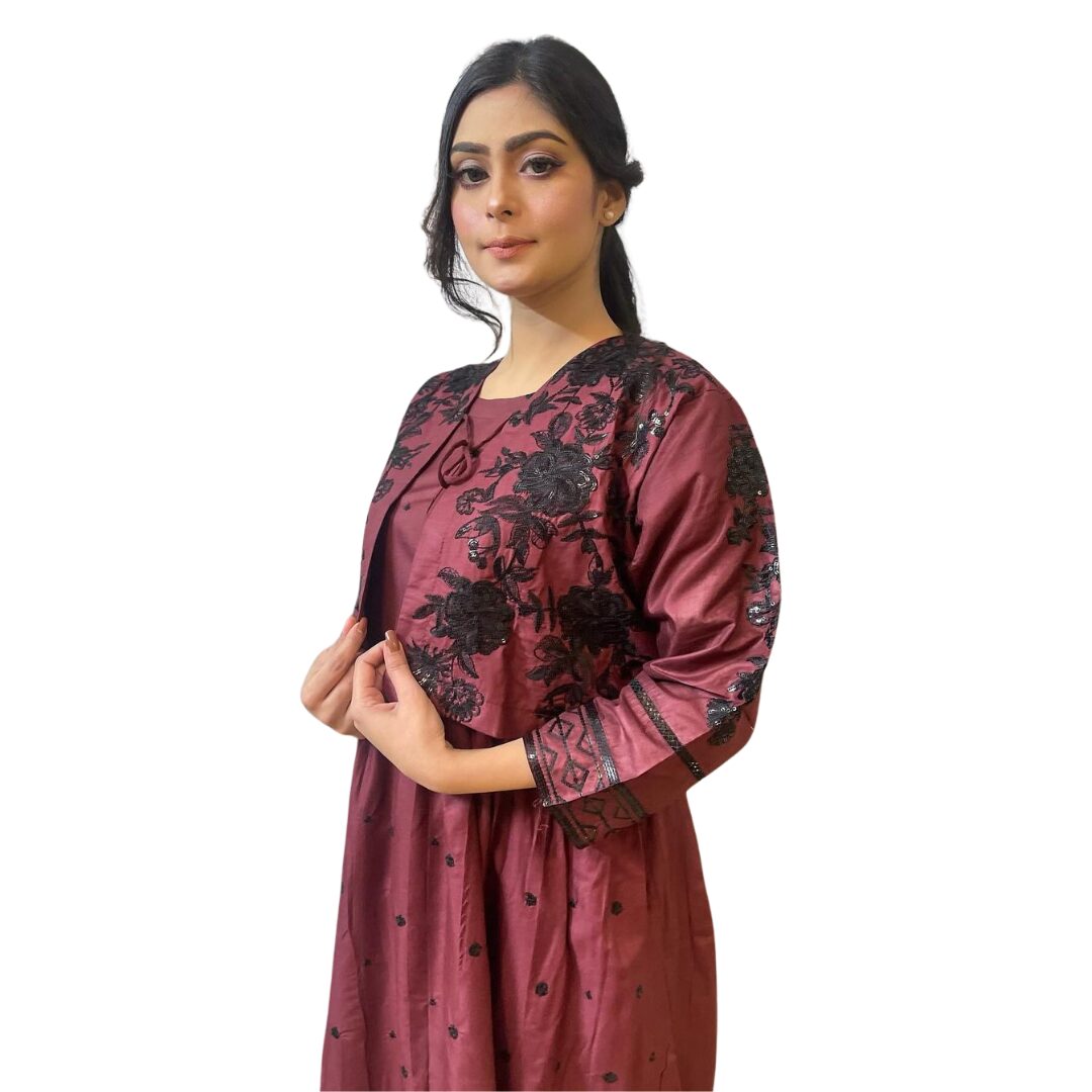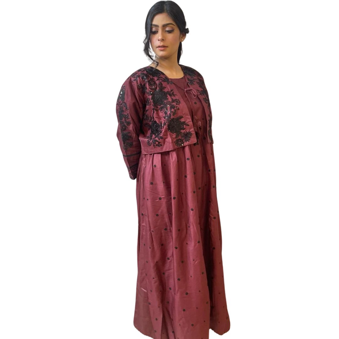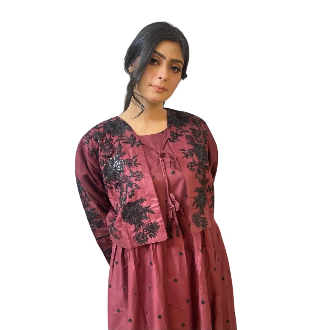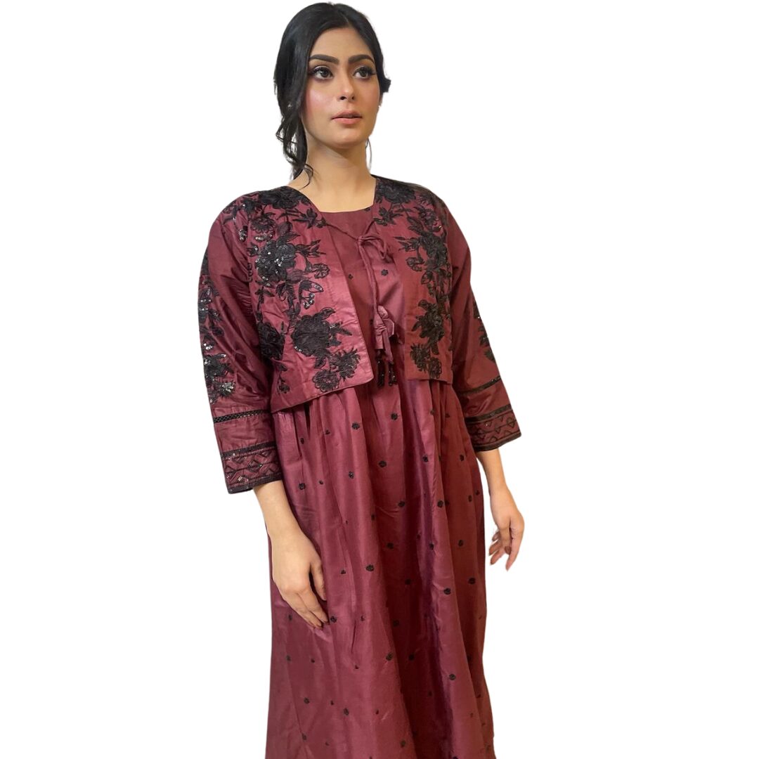 Be the first to review “2 Piece Embroidered Dress Maroon” Cancel reply